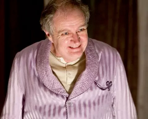 The cosy pyjamas worn by Professor Slughorn in Harry Potter and the Half Blood Prince. Our fabric is featured on the collar of the pyjamas is made from a quilted lilac silk satin.