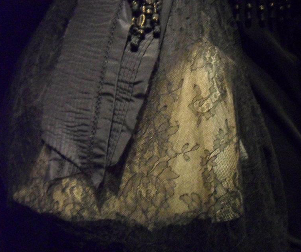 Lace has always featured in Gauliter’s work. This delicate scroll-border French Chantilly is a classic design, which we have available in a number of colours. Here we show it in nautical navy with a nude silk satin underlay.